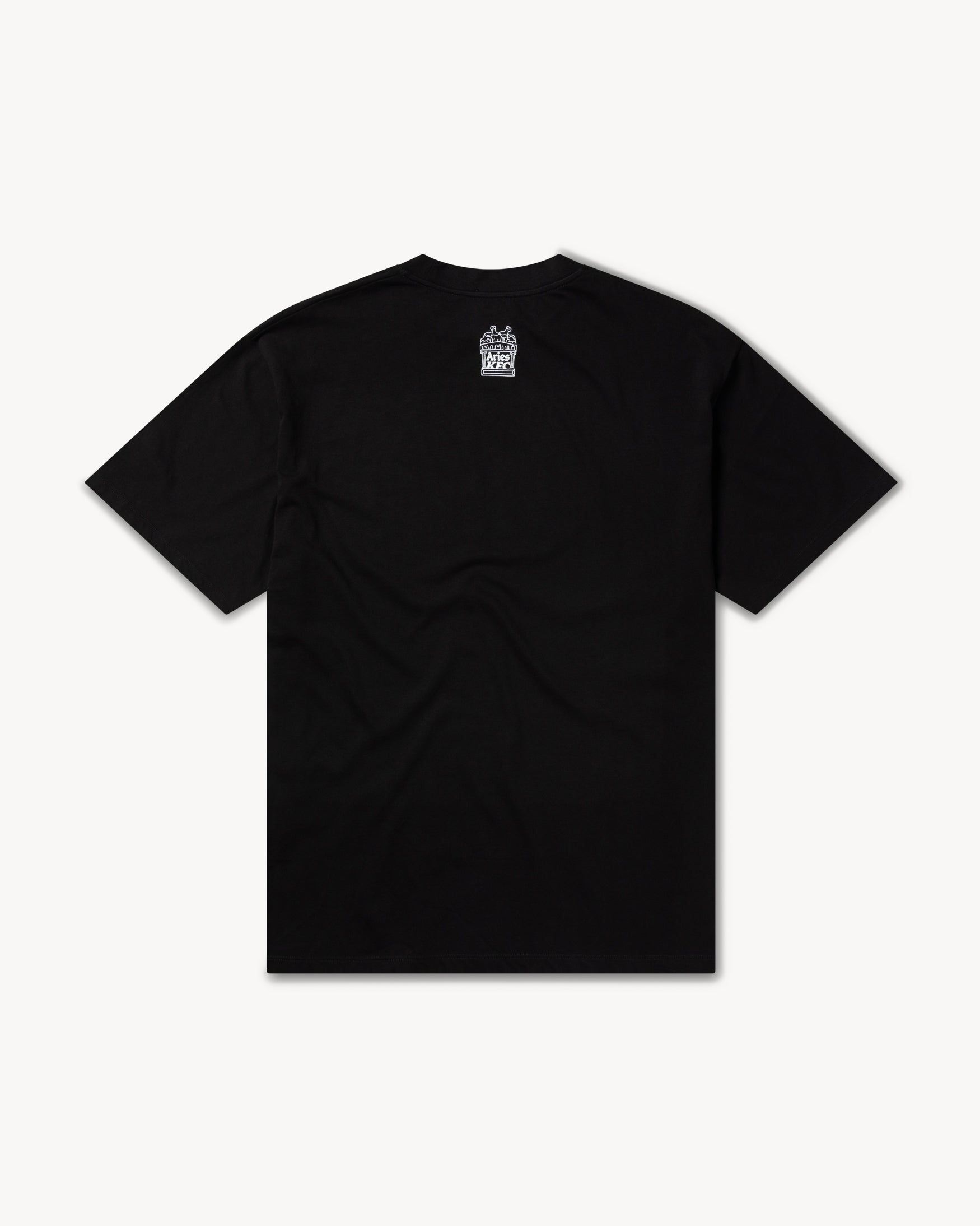 Unisex short sleeve T-shirt crafted from mid-weight 100% cotton jersey. Features the Aries x KFC Temple Drip logo on the front, combining printed ink with gold foil detailing for a graphic finish.