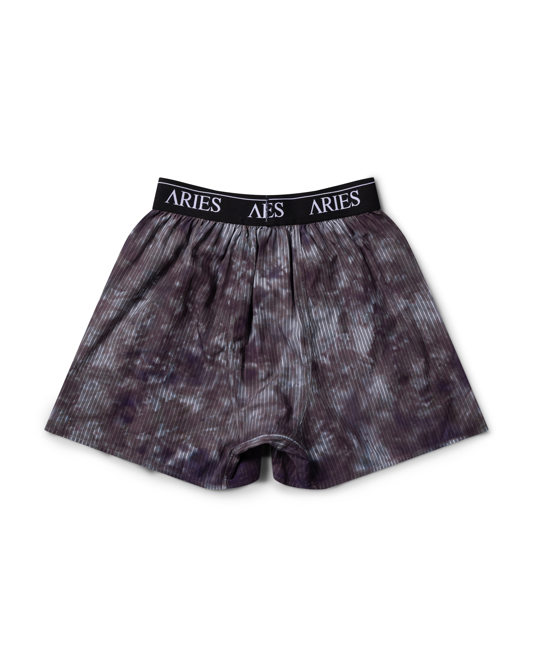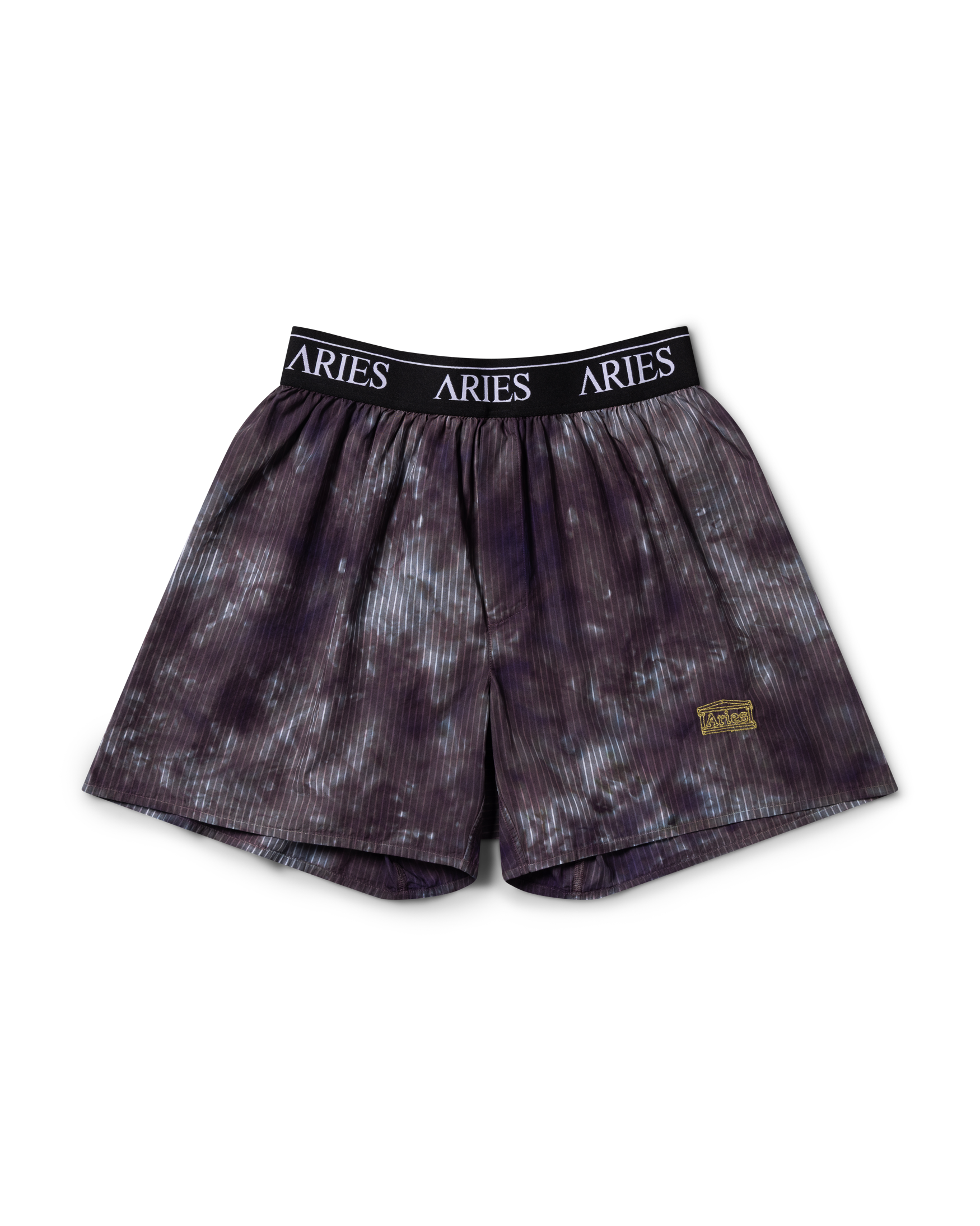 Classic poplin stripe boxer shorts, with a tie dye treatment, Aries logo elastic and embroidered Aries Temple. 100% cotton. Made in Portugal