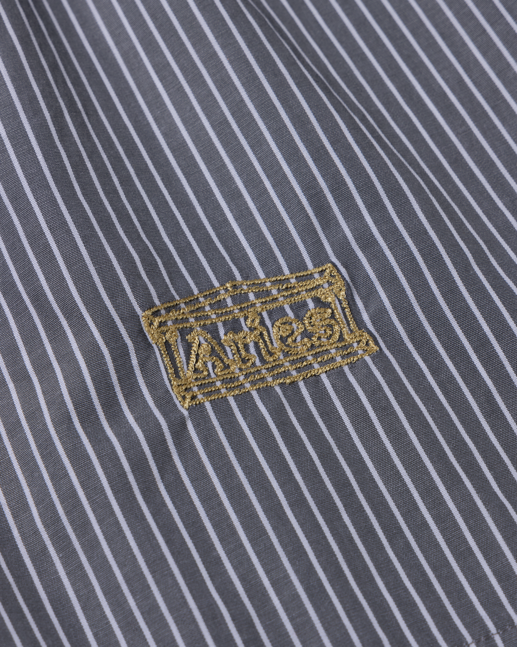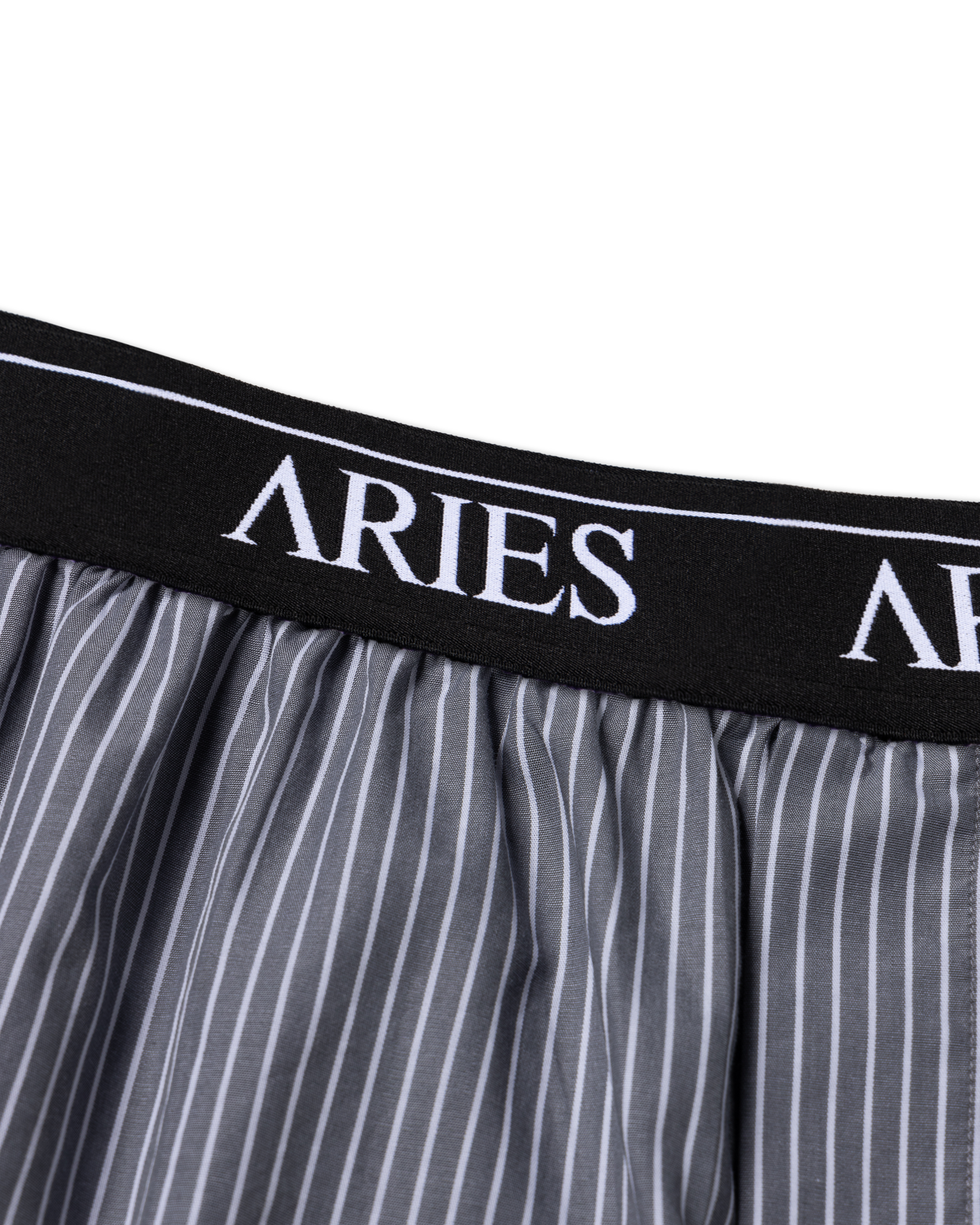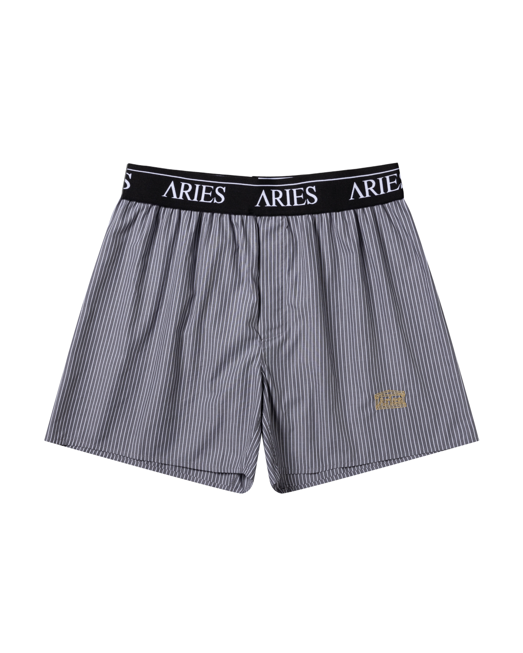 Classic poplin stripe boxer shorts with Aries logo elastic and embroidered Aries Temple. 100% cotton. Made in Portugal