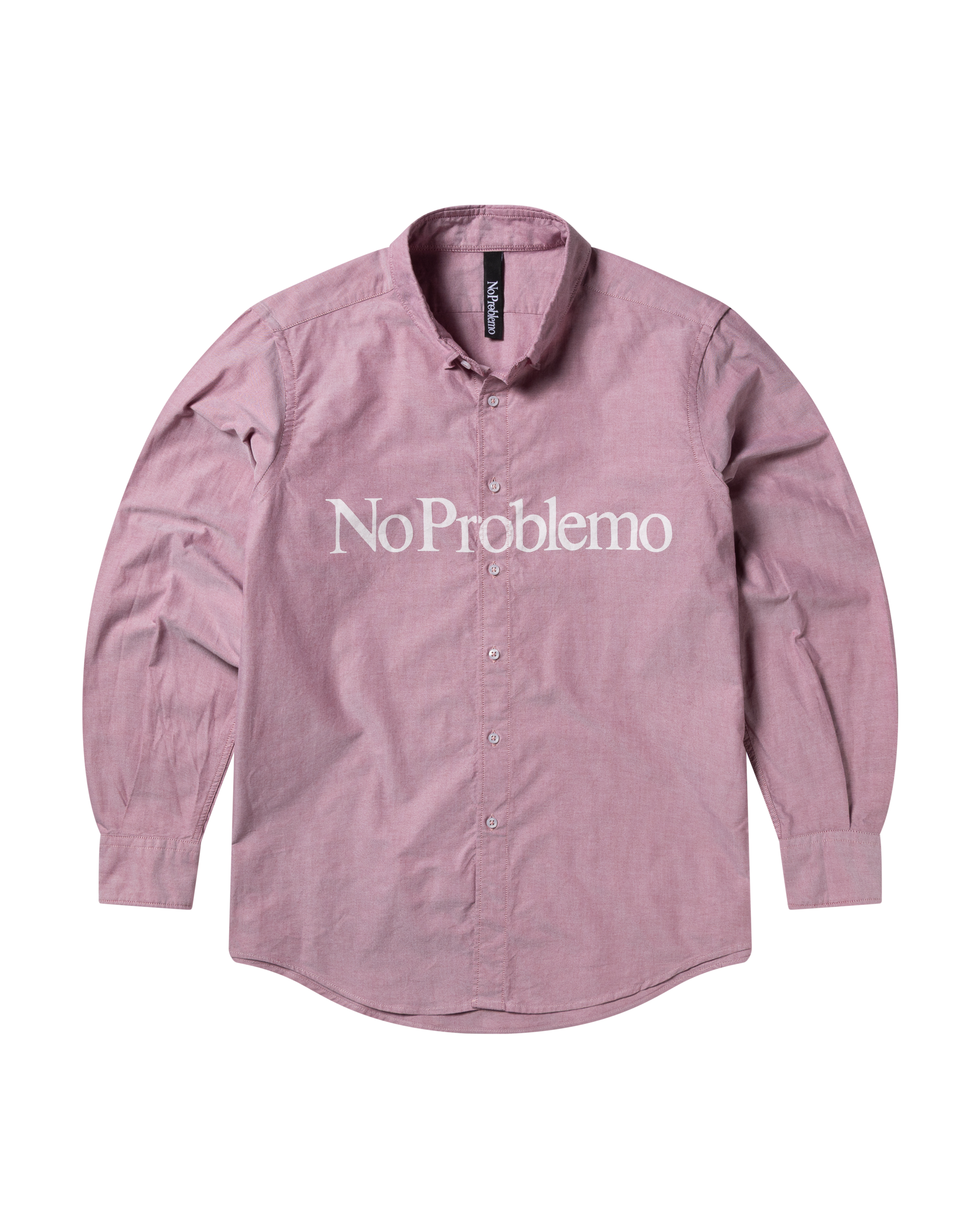 Classic long-sleeved oxford shirt featuring a No Problemo logo screen print across the chest.