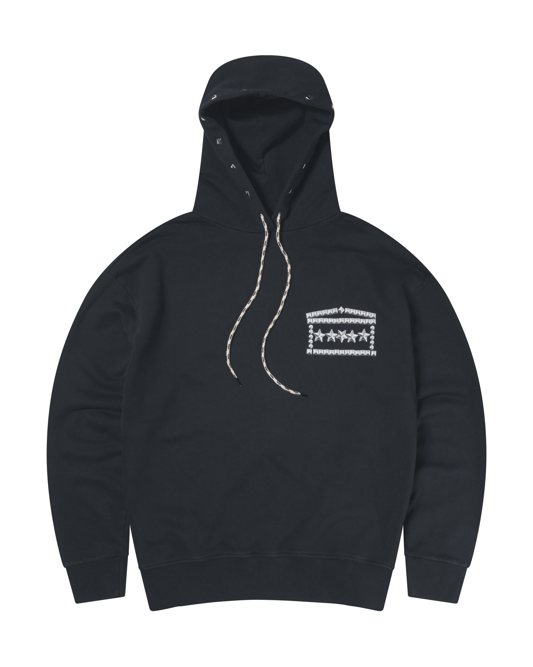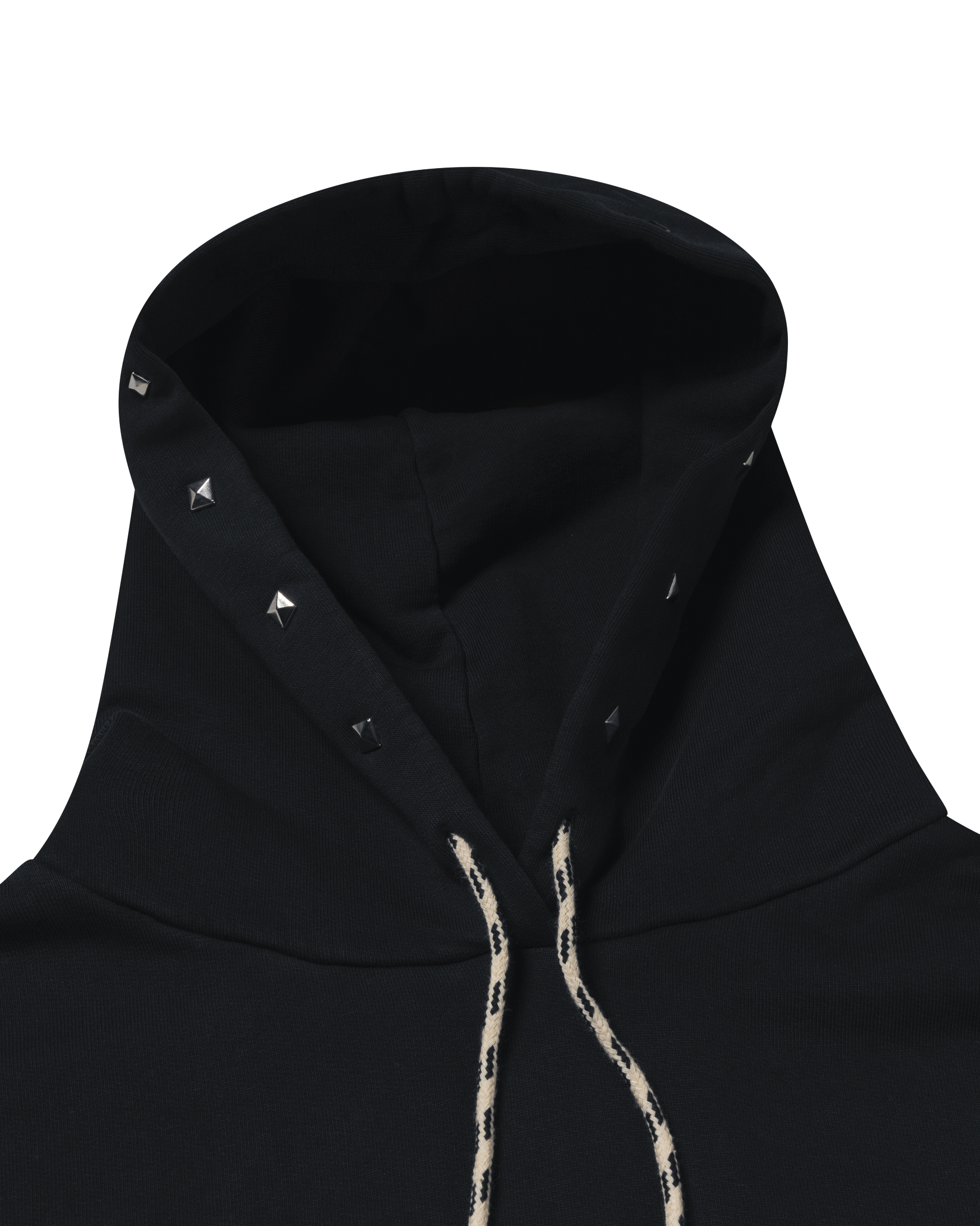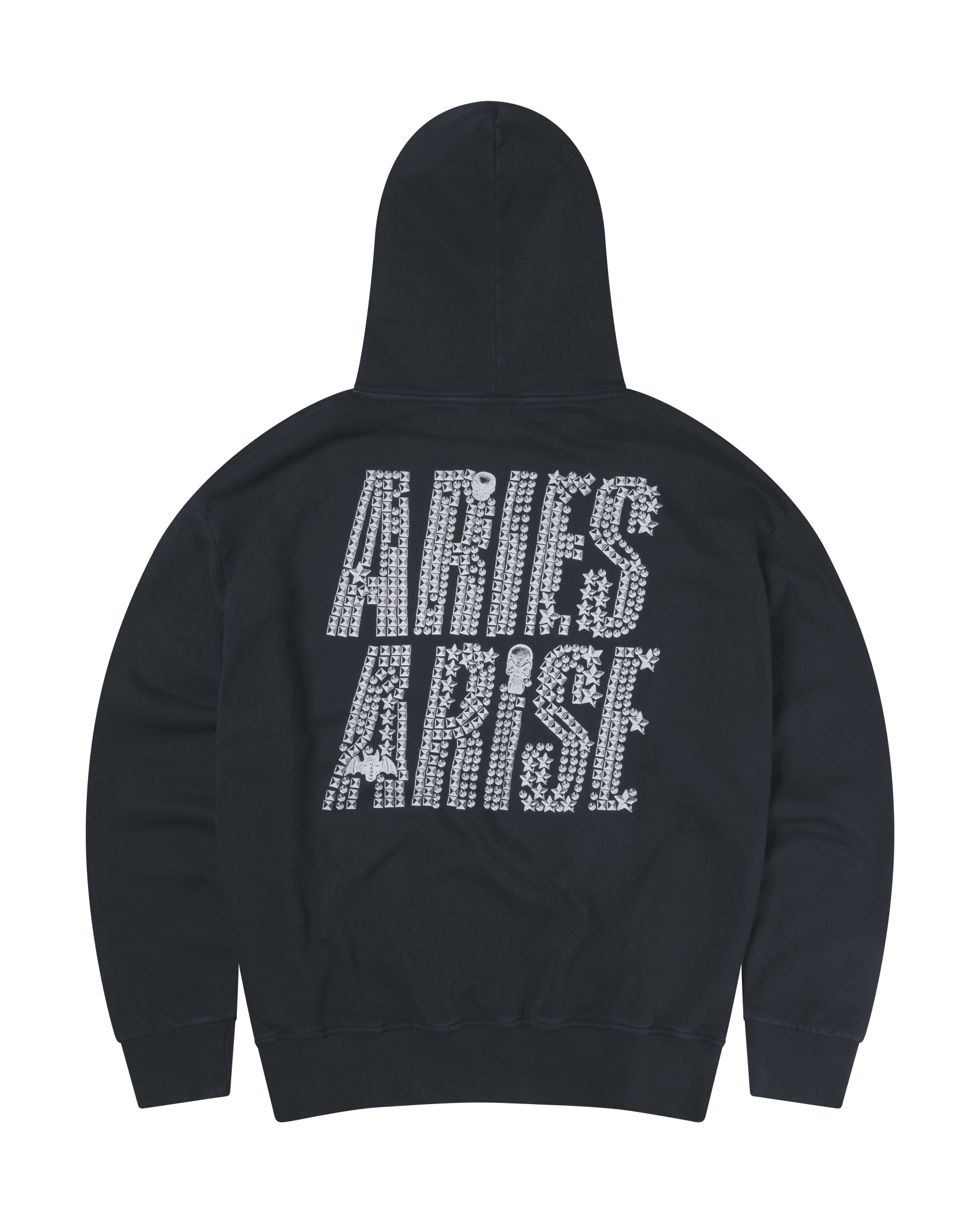 Hooded sweat made from brushed-back jersey fleece, with seasonal 'Studded Aries Temple' graphic screen-printed on the chest and 'Studded Aries Arise' screen printed big on the back, studded around the hood and finished with a stone wash treatment for a washed out, faded effect. 100% cotton