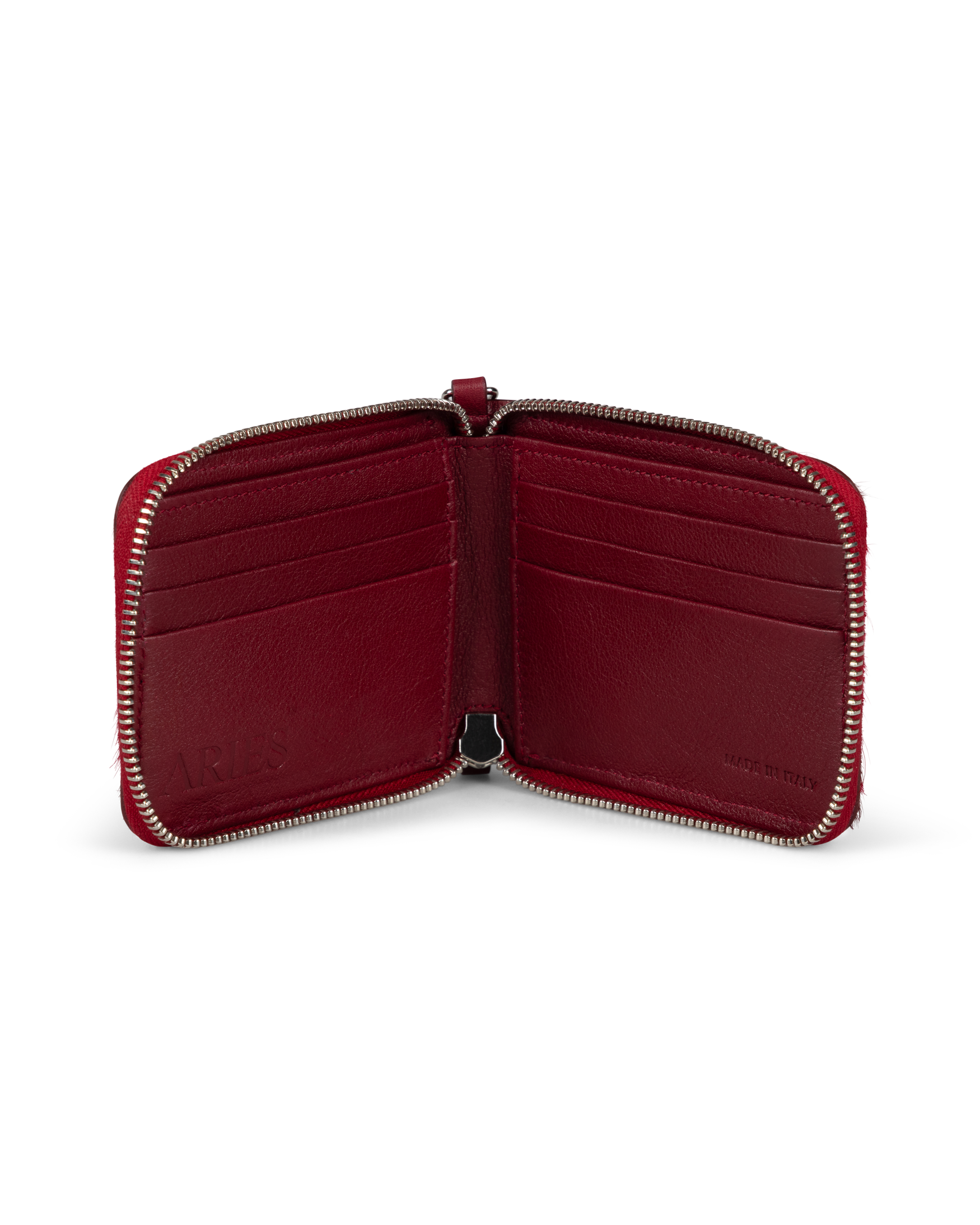 Ponyskin Bobby Wallet. Metal Aries Temple, Aries Made in Italy Stamp.