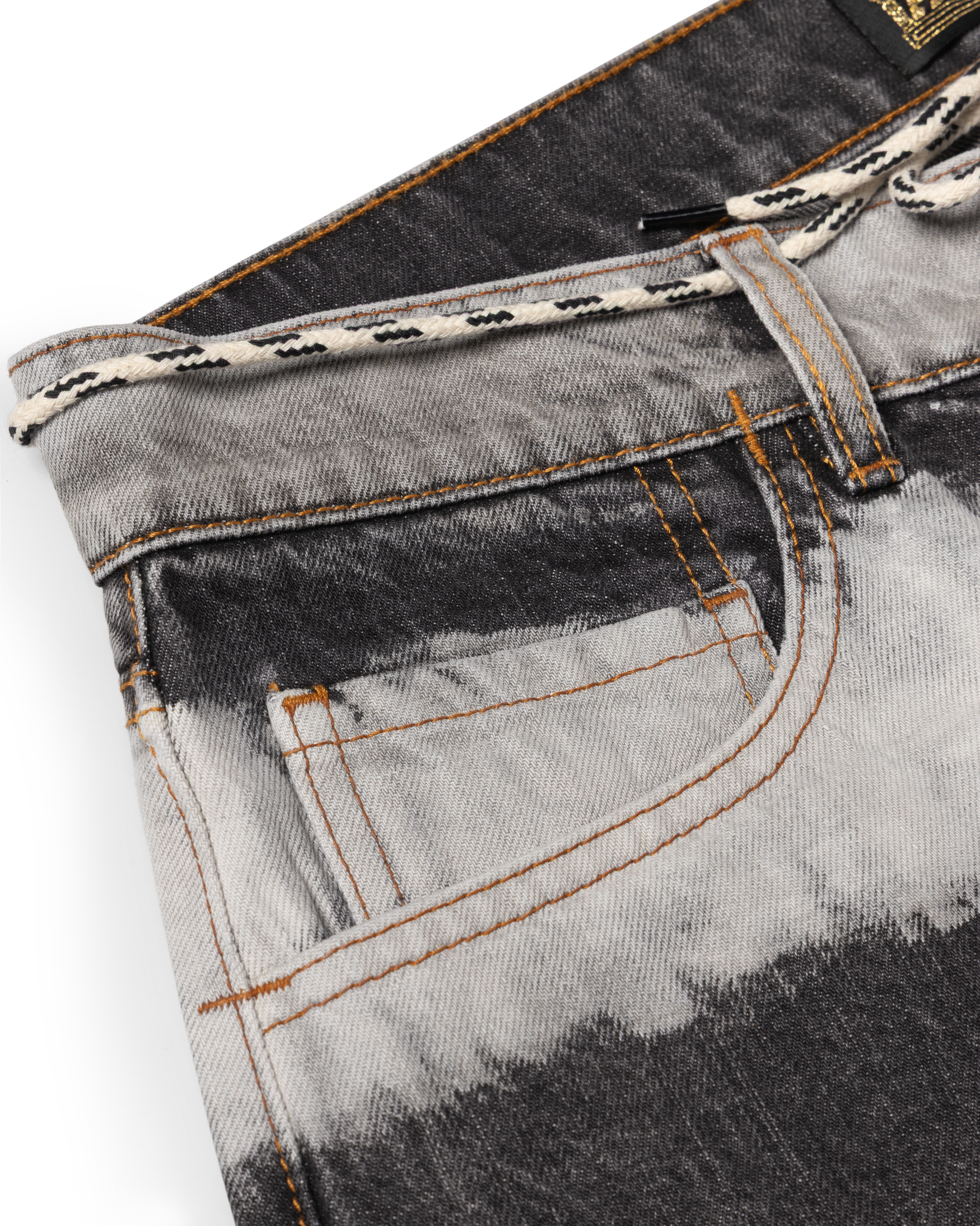 Unisex five pocket Lilly jean made from 100% cotton denim with a bleached out stripy treatment.