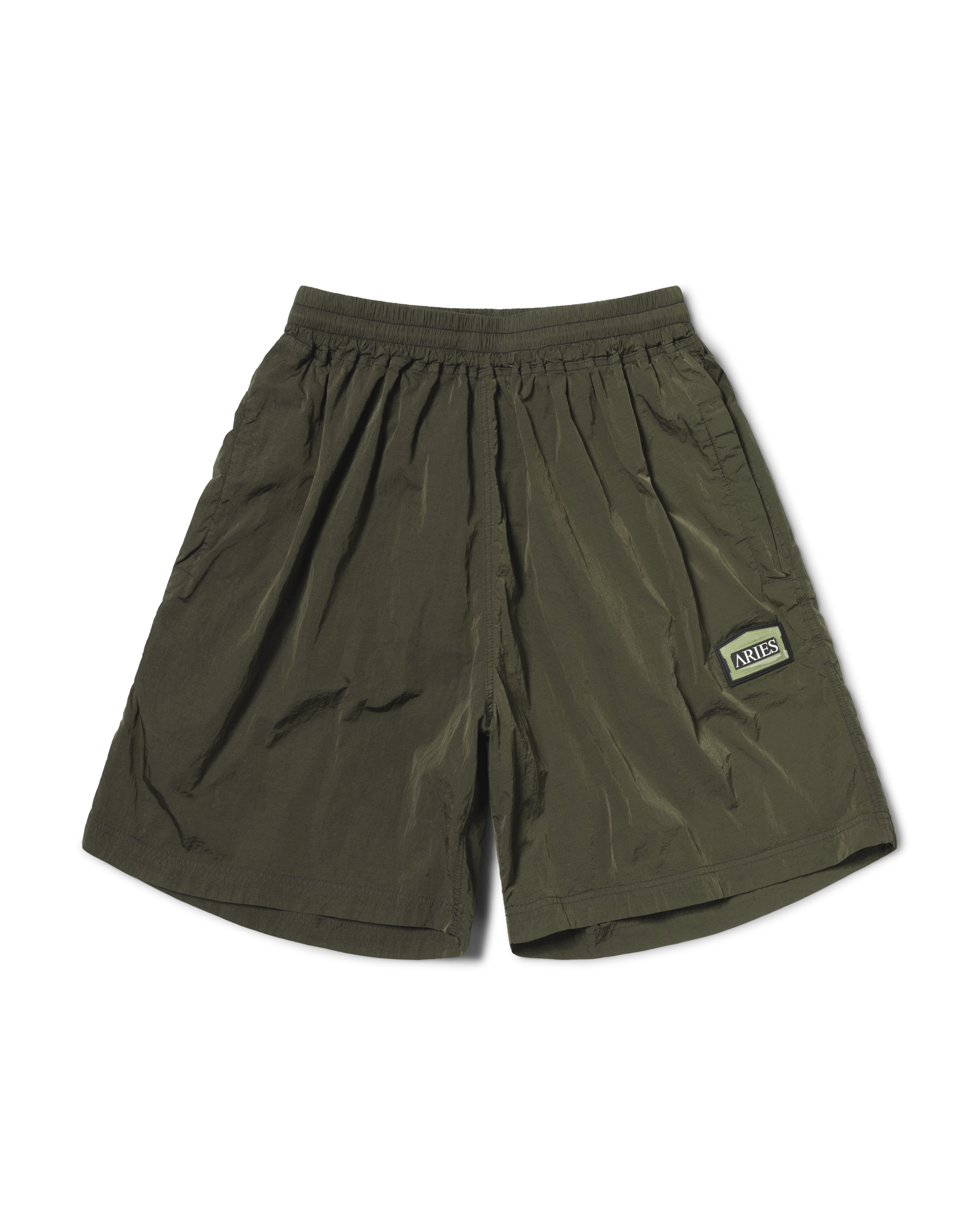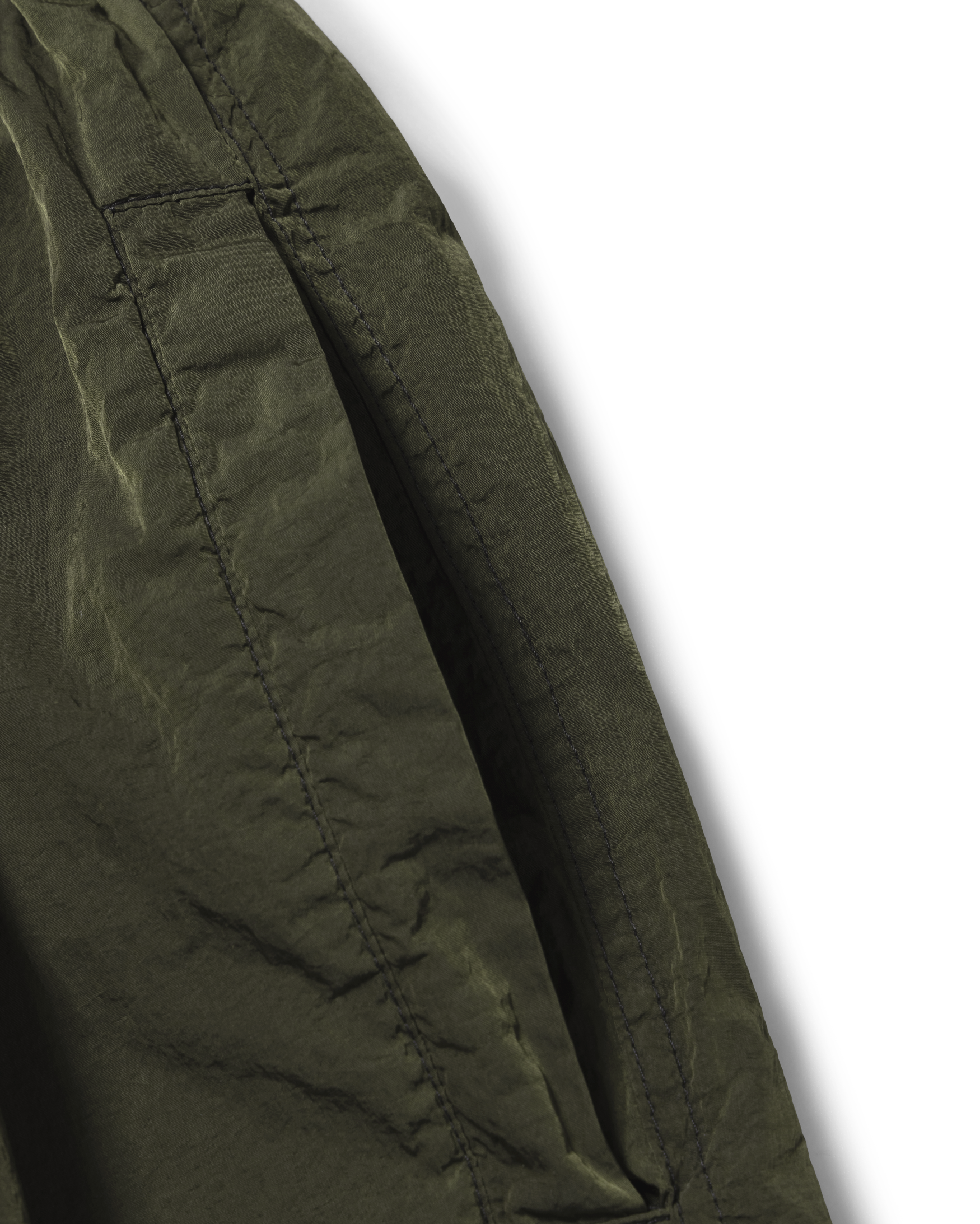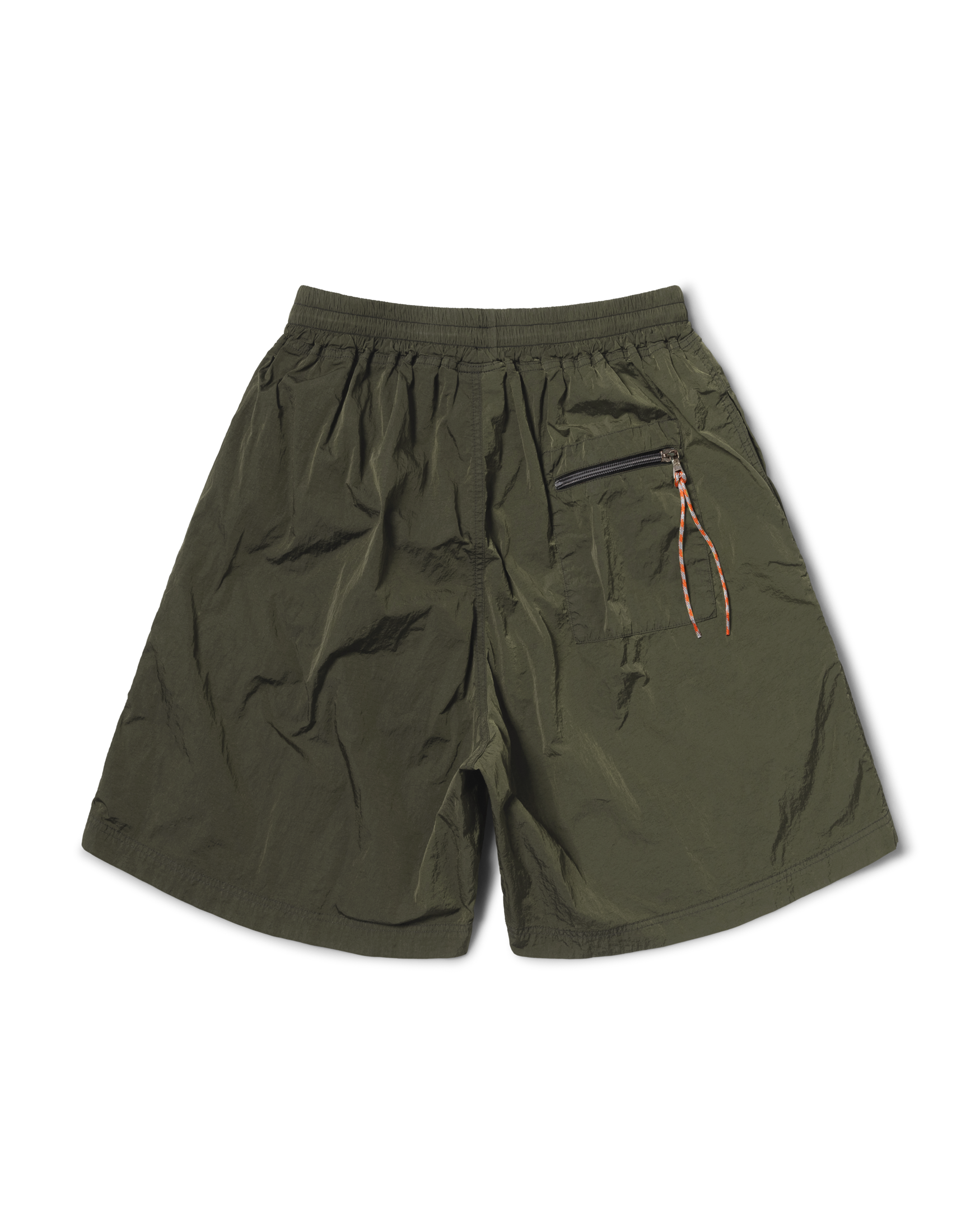 Lightweight shorts with elasticated waistband and zip patch pocket on the back, with a patchy garment dye finish.