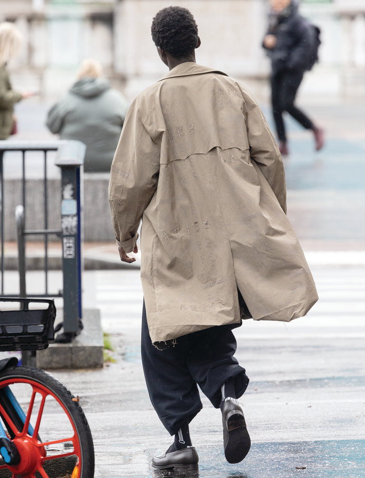 upcycling two of Baracuta’s timeless outerwear silhouettes with an ensemble of Aries house graphics and Aries Greek logo.
