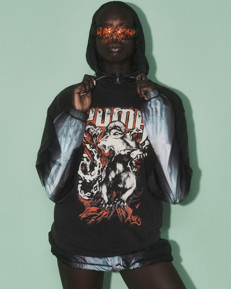 Blending PUMA’s heritage with Aries’ luxe-streetwear aesthetic and signature graphics, the partnership riffs on racing aesthetics, mixing modern and nostalgic references into one breakneck vision.