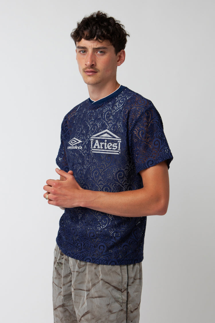The collaboration capsule includes a moto-mesh long sleeve tee featuring a selection of Aries custom graphics, as well as the knitted cardigan printed with an original digital print.