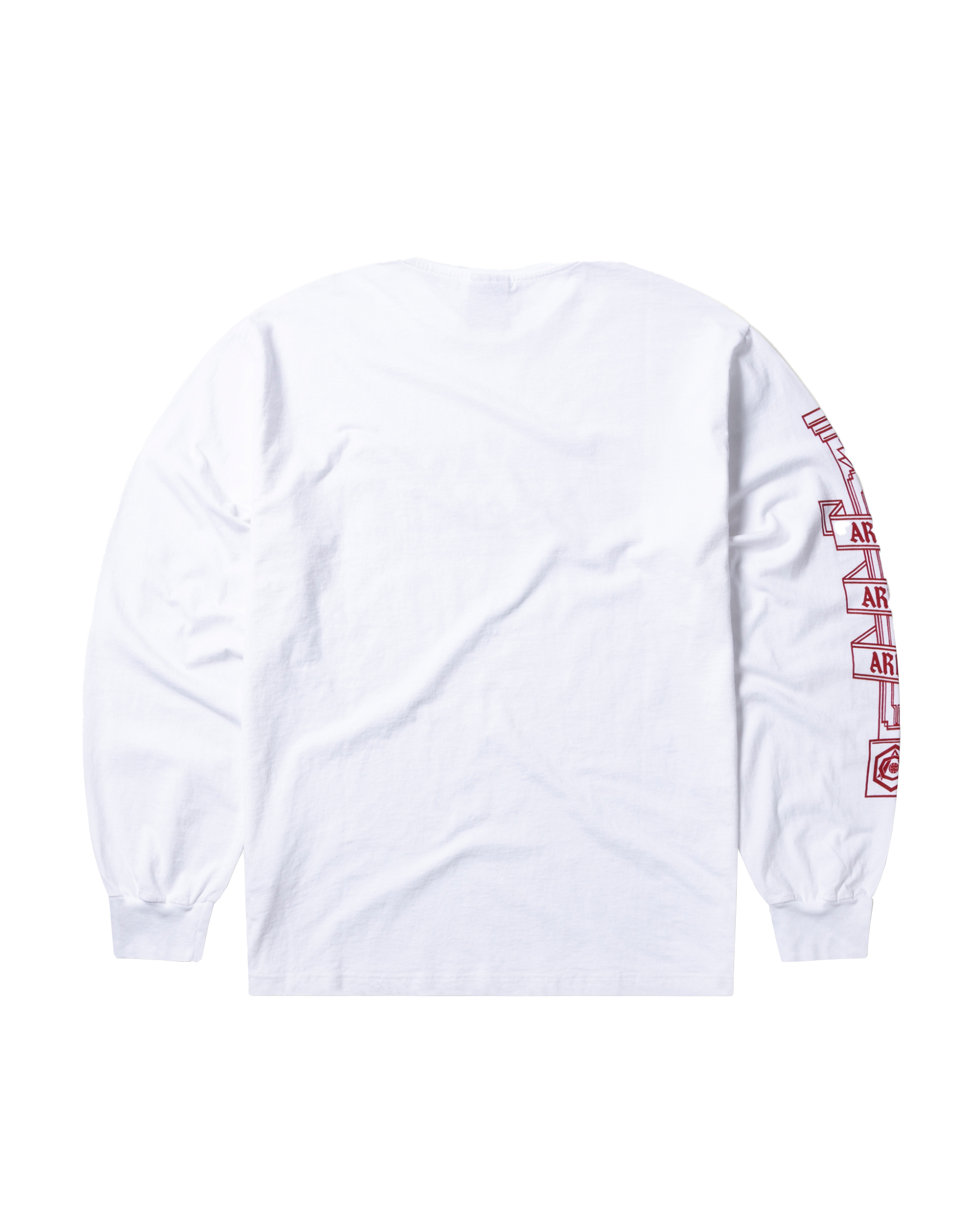 Unisex long sleeve t-shirt made from 100% cotton, mid-weight open end jersey. With Arsenal x Aries Highbury Stadium Temple graphic, screen-printed on the front and collab column sleeve prints.