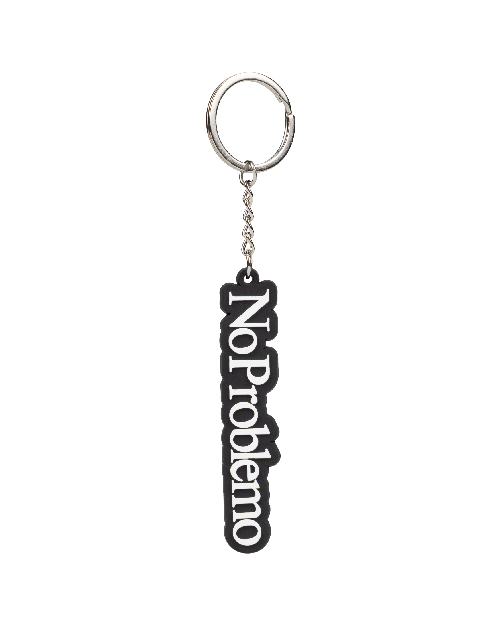 silicone keychain featuring no problemo graphics