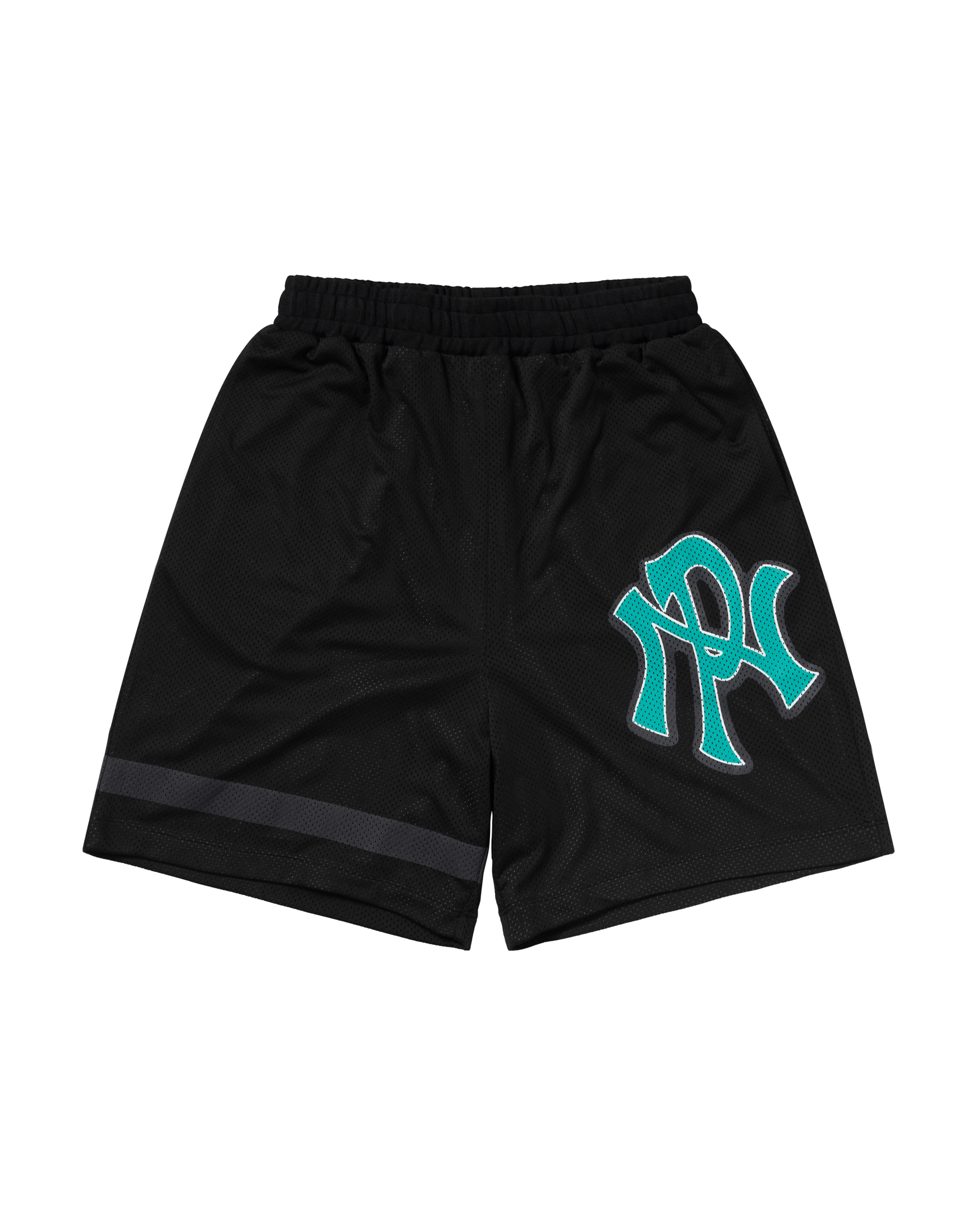 Unisex mesh shorts with elasticated waistband and side pockets featuring the NYP print on the front leg.