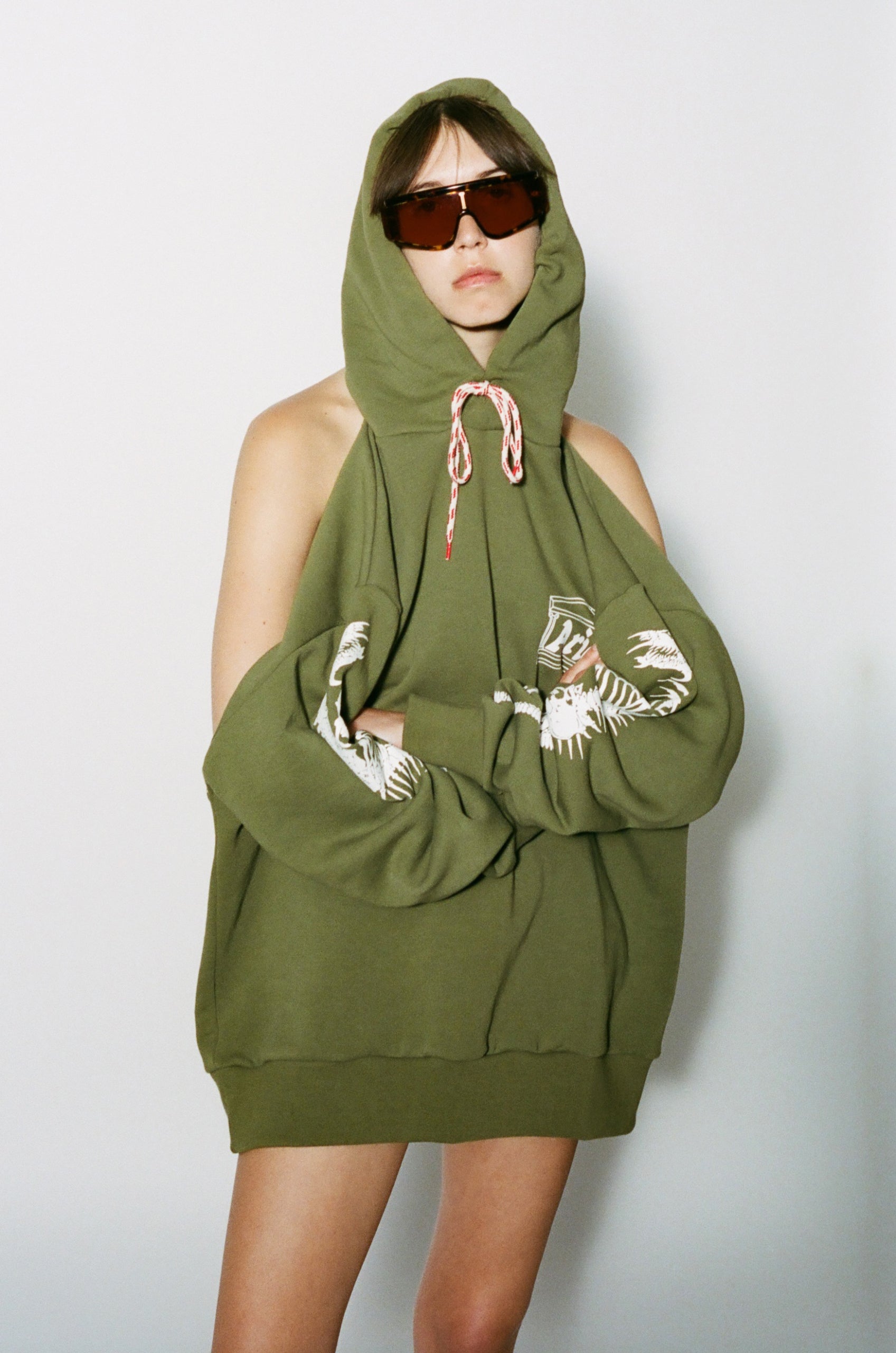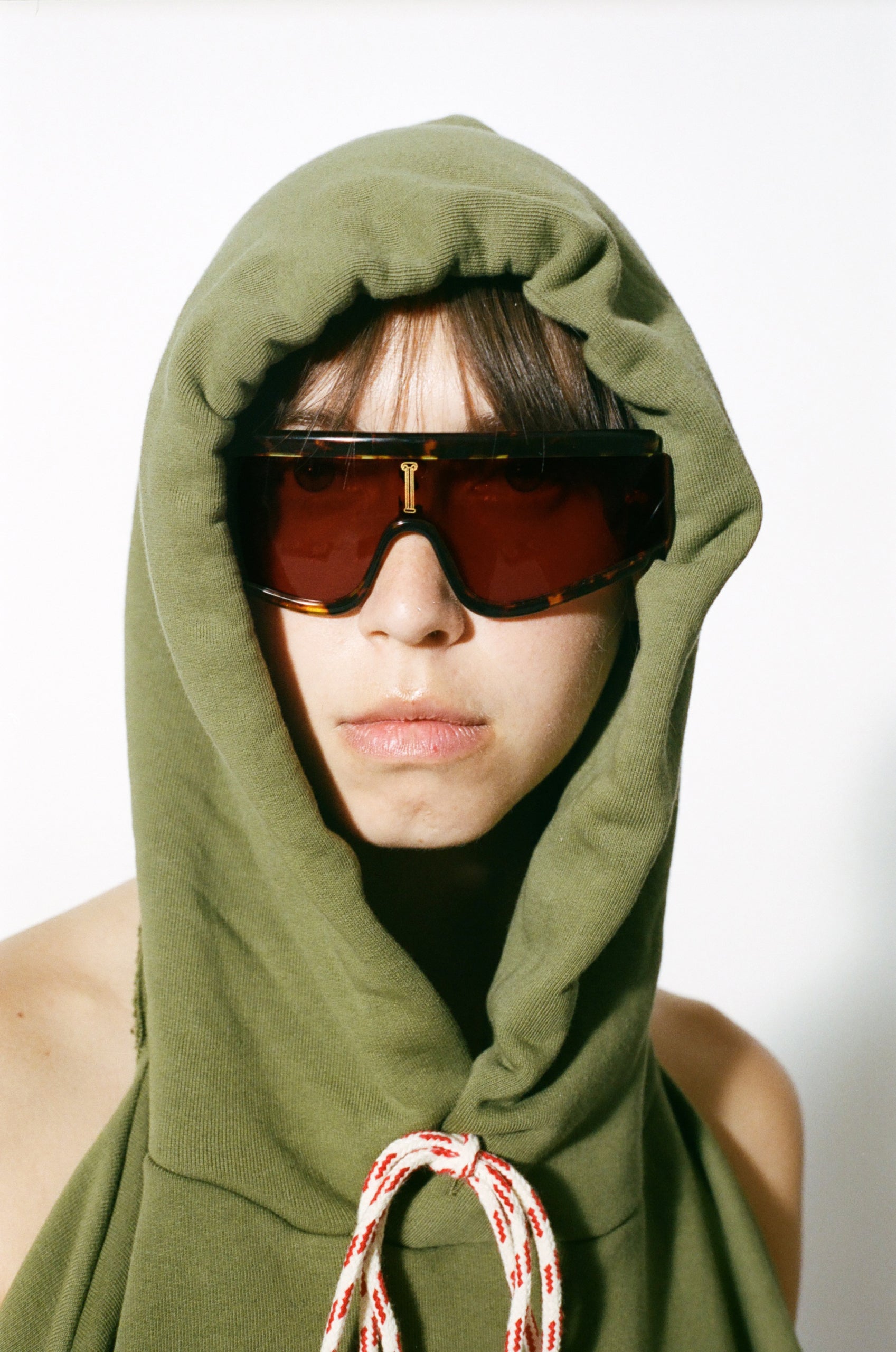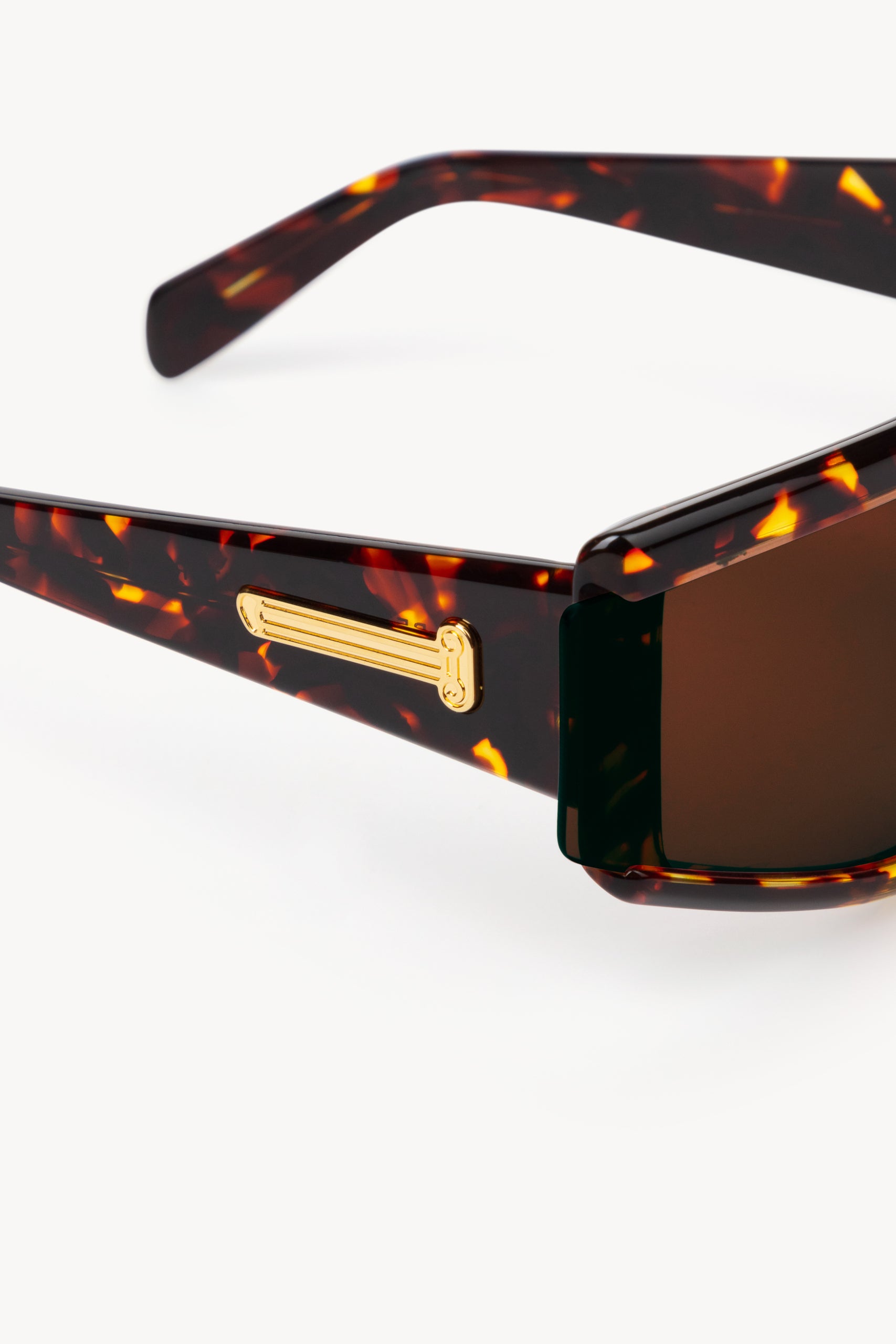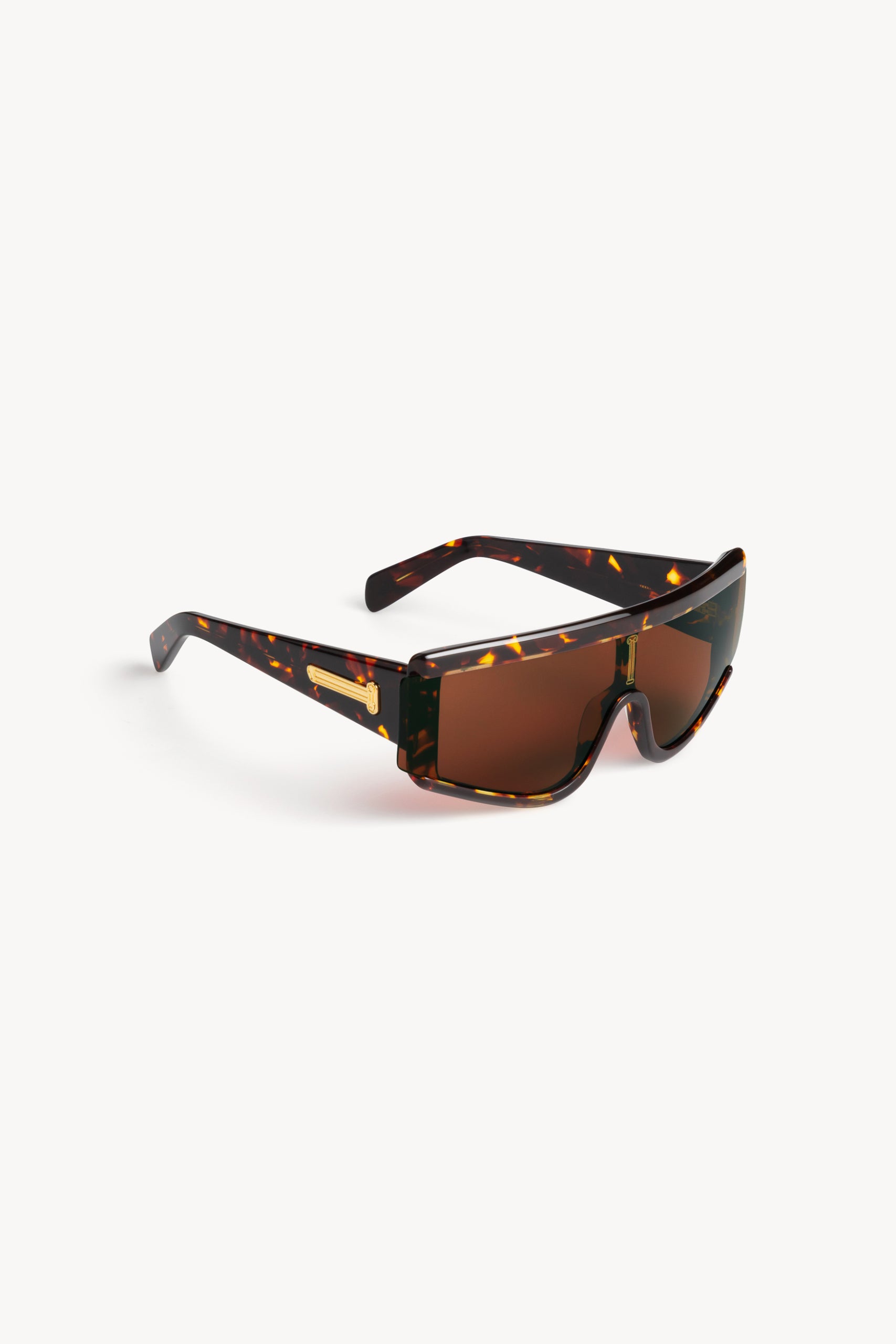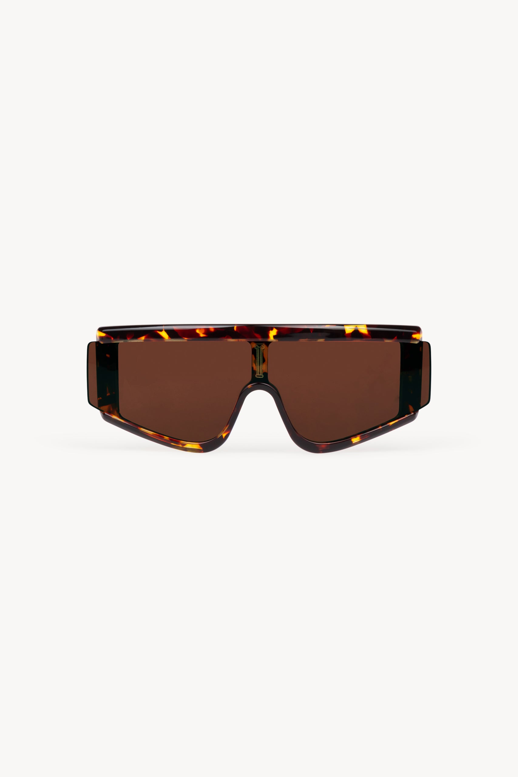The Aries x RSF ZED is characterized by its unique shield lens and carefully crafted acetate body. The thick acetate construction features precise lines in contrast with smooth curves and thick temples. The highlight of the model is the lens cut, which extends over the acetate on the exterior sides, creating a unique angular detail on the temples.