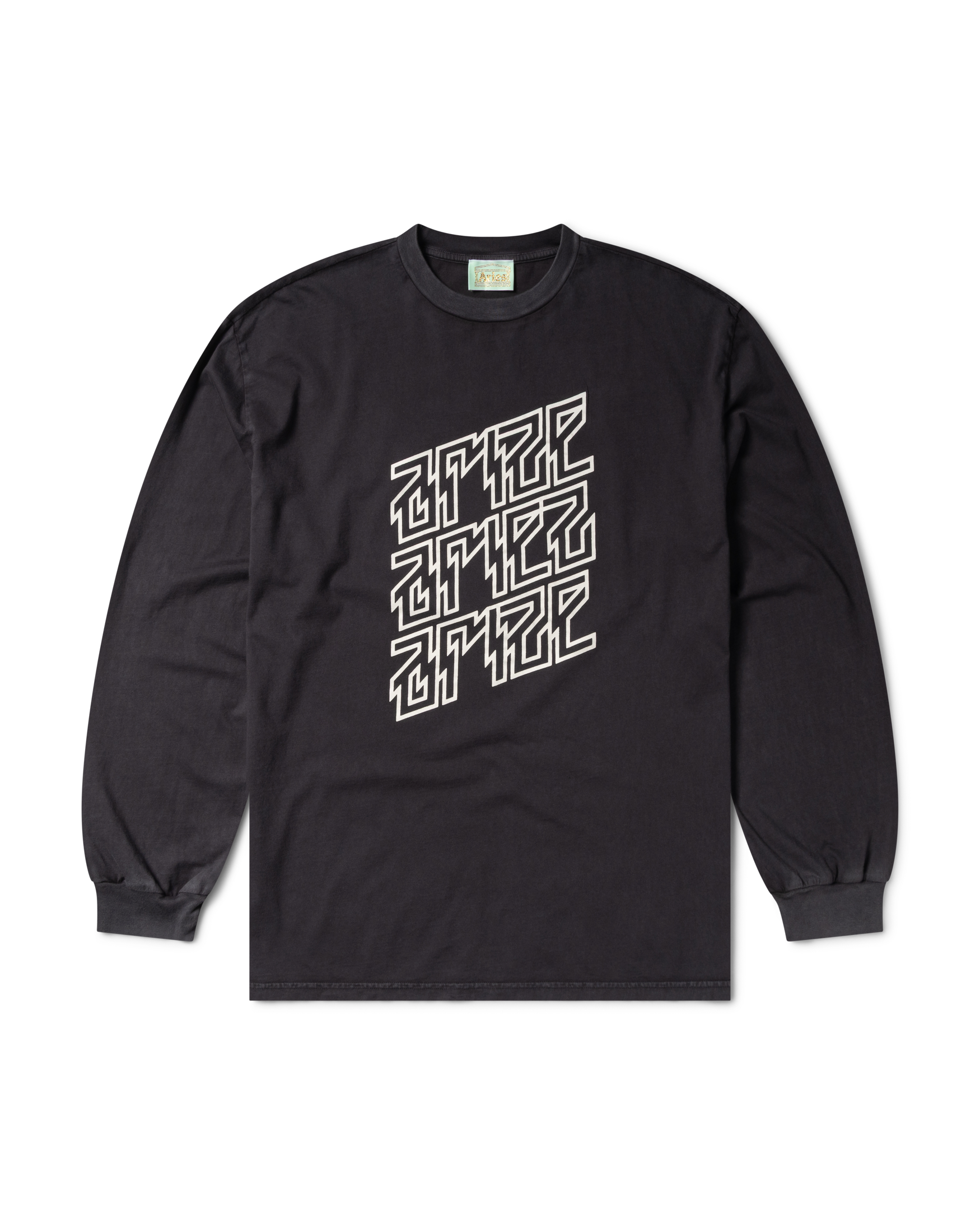 Unisex long sleeve t-shirt made from 100% cotton, mid-weight open end jersey, with Ariez Arize graphic screen printed on the front. Finished with a stone wash treatment for a washed out, faded effect.