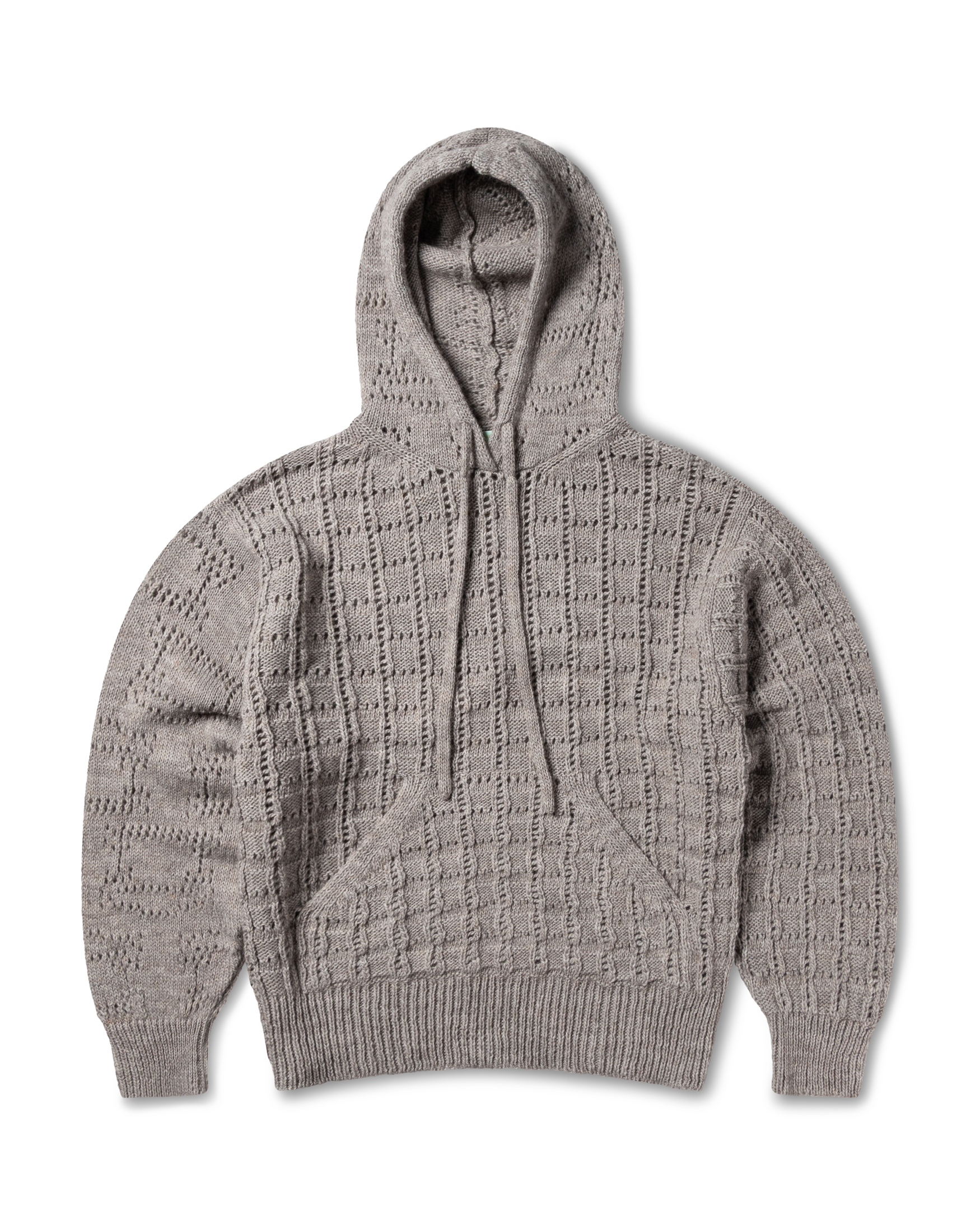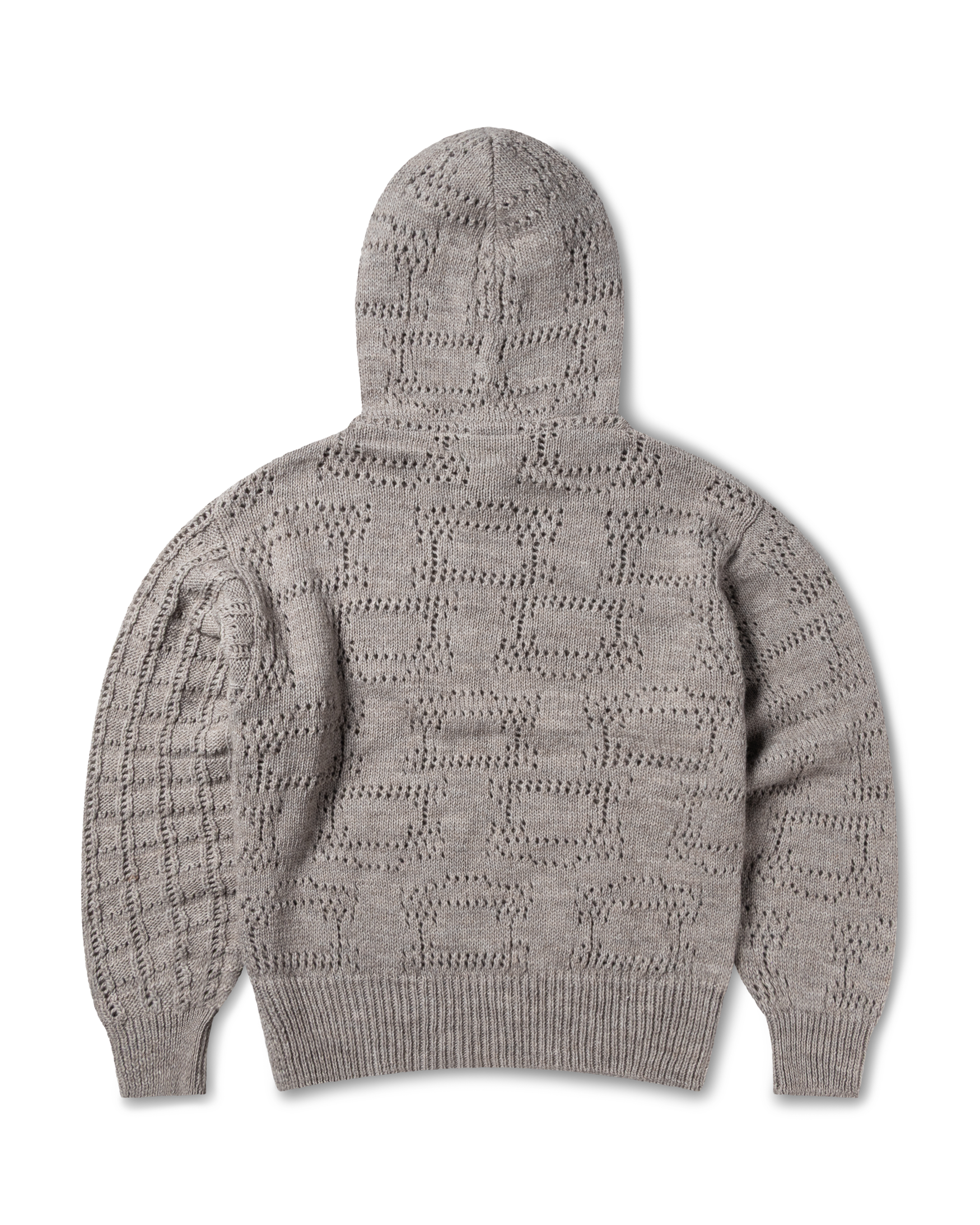 Unisex knitted hoodie in a mixture of pointelle stitches with Aries Temple design in the hood.