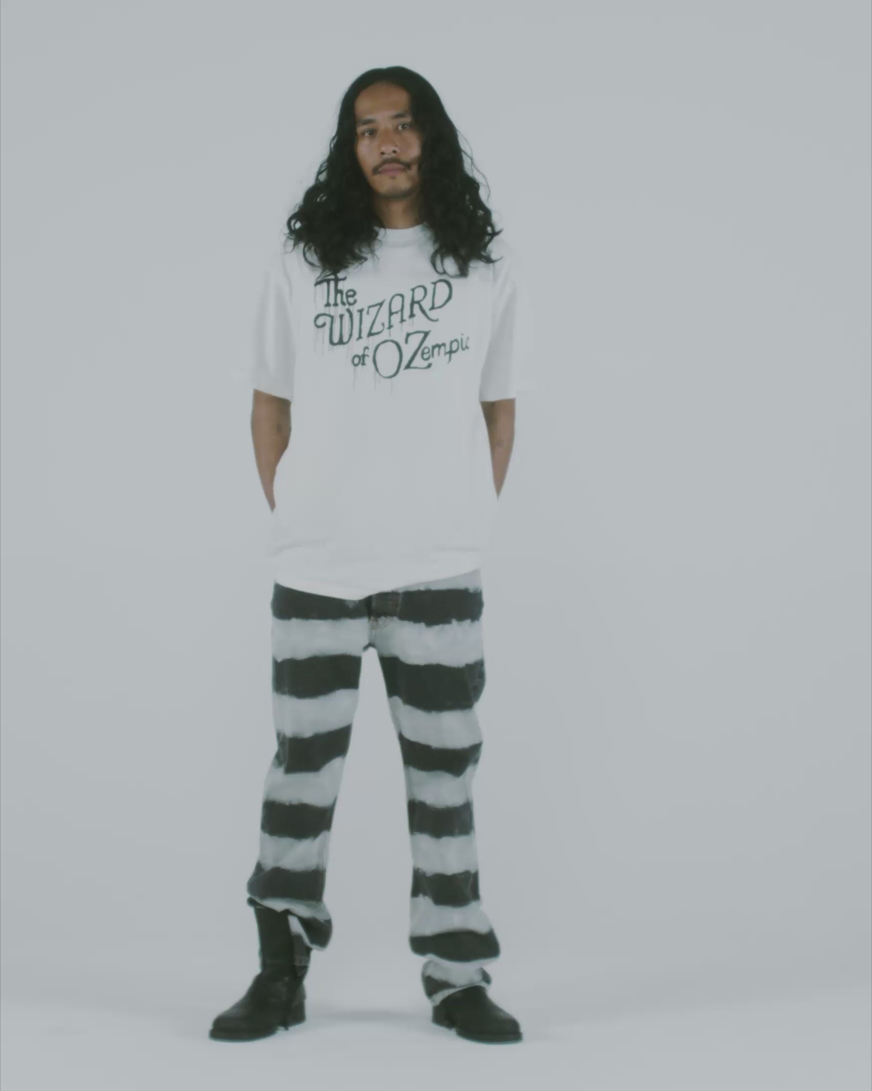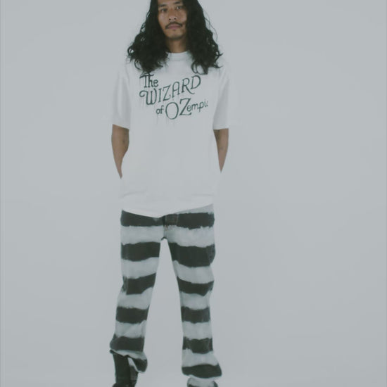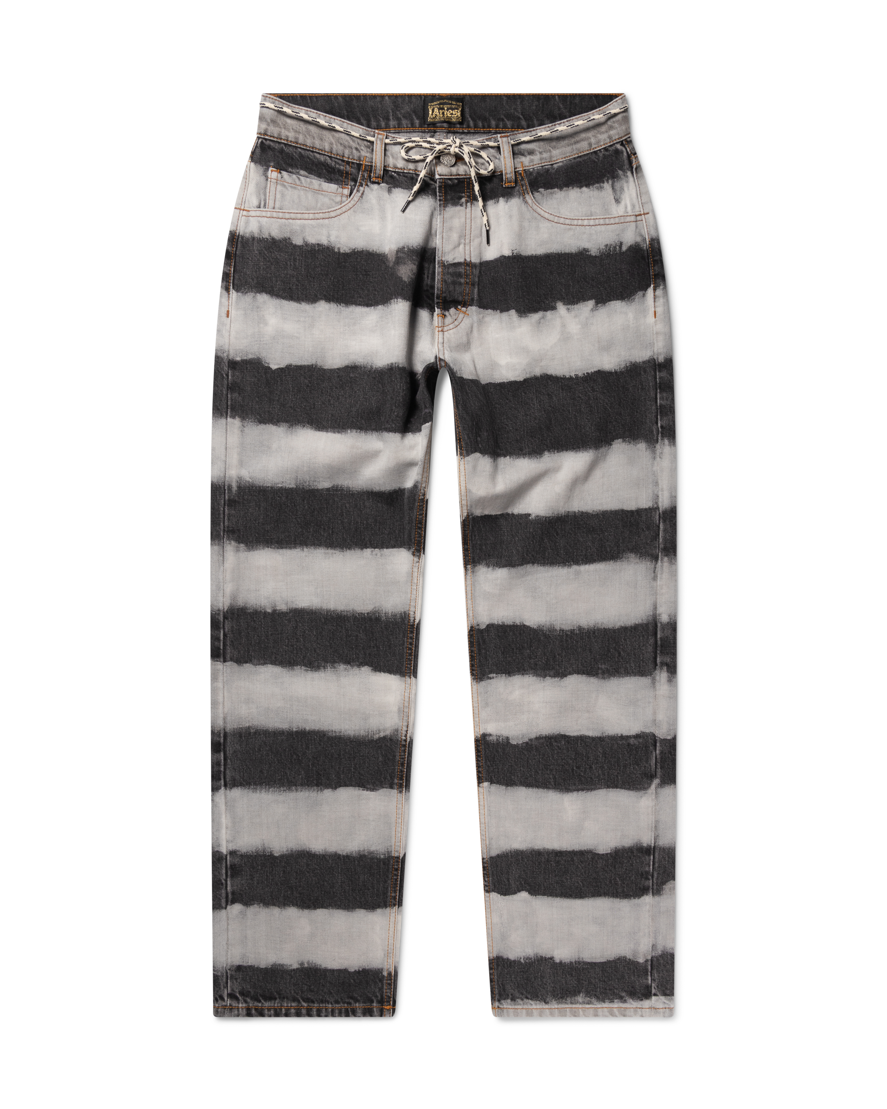 Unisex five pocket Lilly jean made from 100% cotton denim with a bleached out stripy treatment.